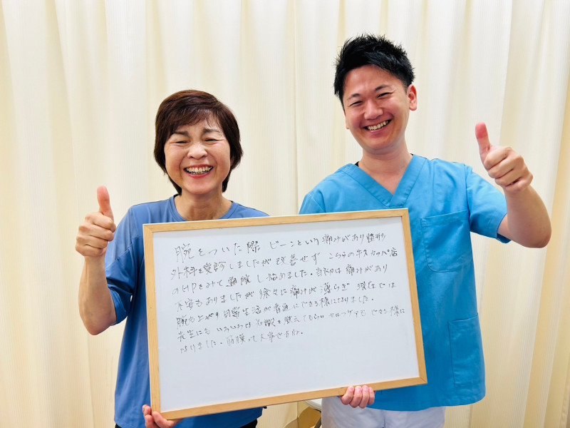 「薬を飲んでも痛かった肩の痛みが解消され着替えもできるようになりました!」