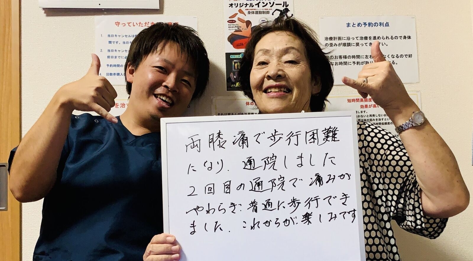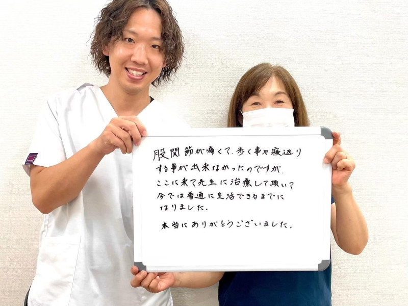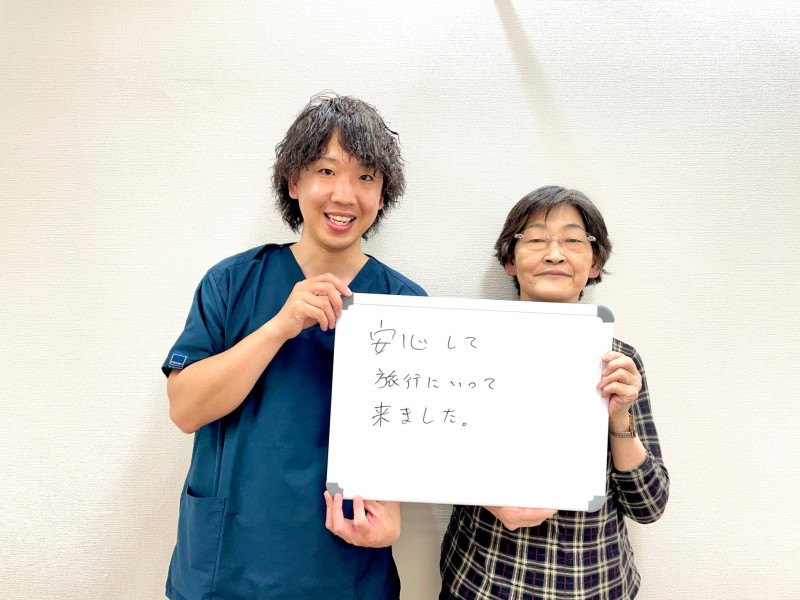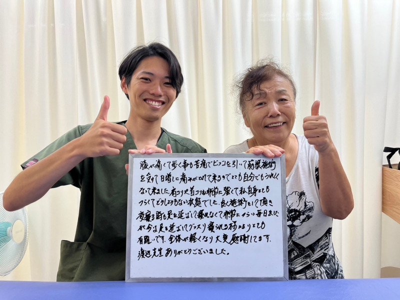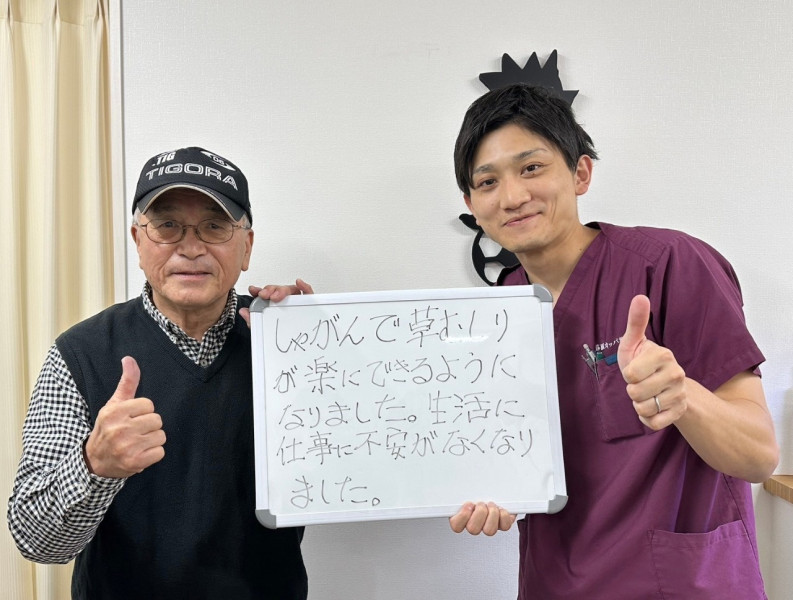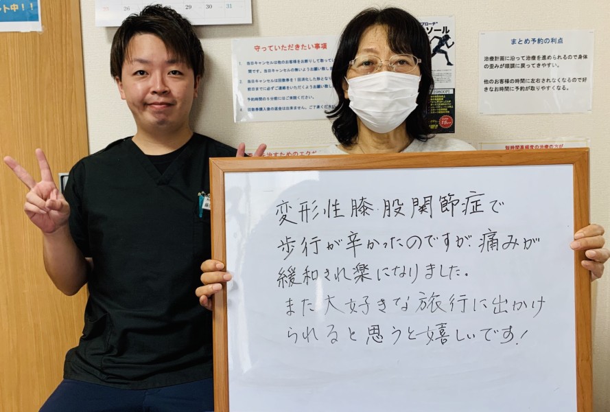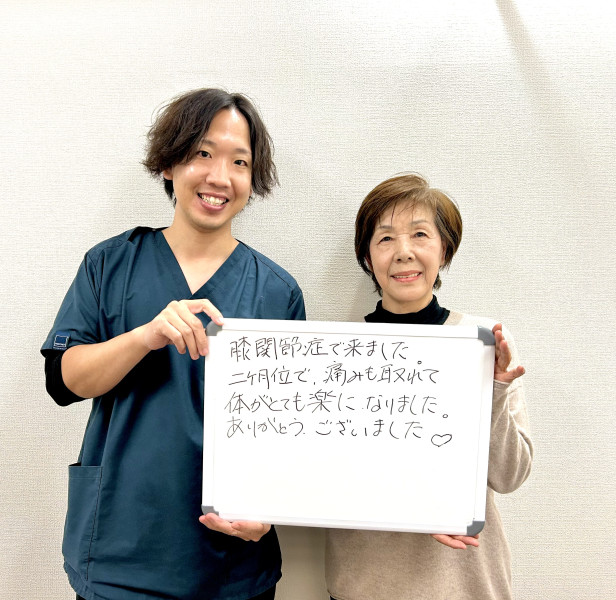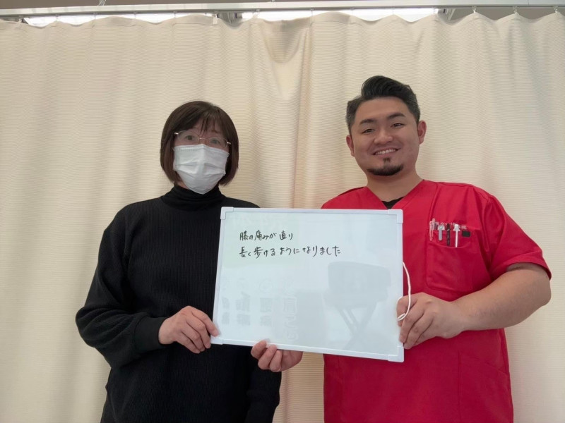 Q、症状の改善などどのような変化がありました? A、腰痛に関しては、夜ゆっくり眠ることができるようになり、痛みが軽くなりました。膝は全く痛みがなくなりました。