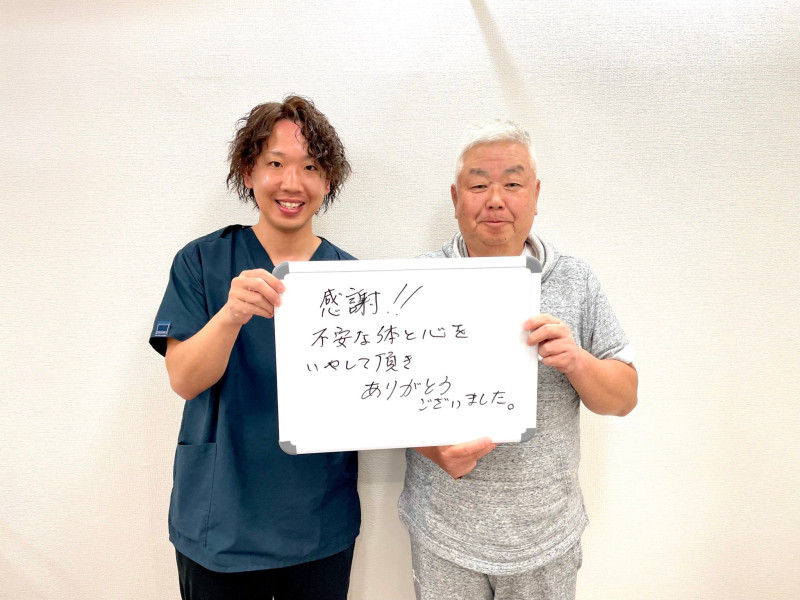 Q、あなたと同じような症状でお悩みの皆様へメッセージがありましたら教えてください。 A、とりあえず施術されてみた方がいいです。自由に動けるようになる。