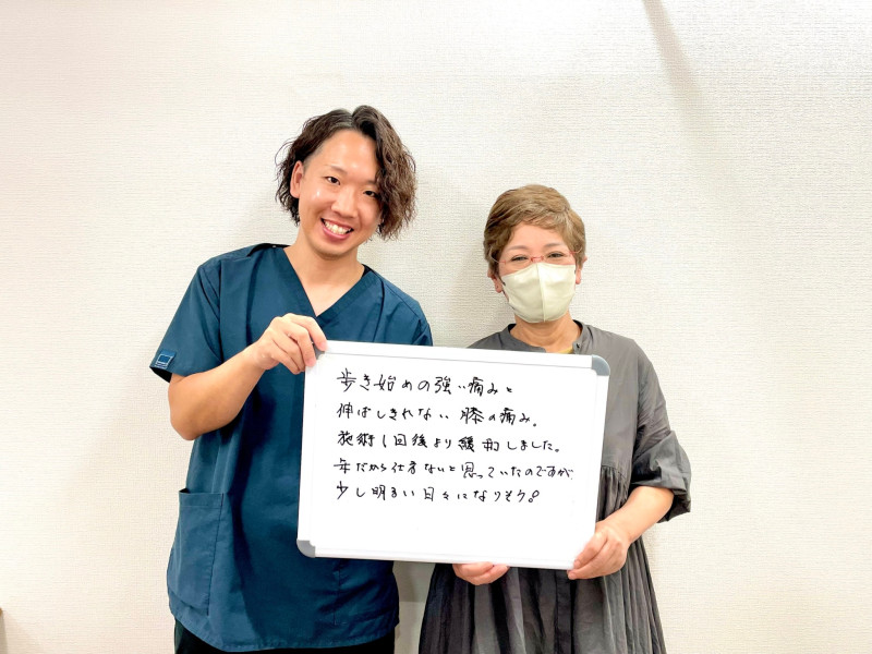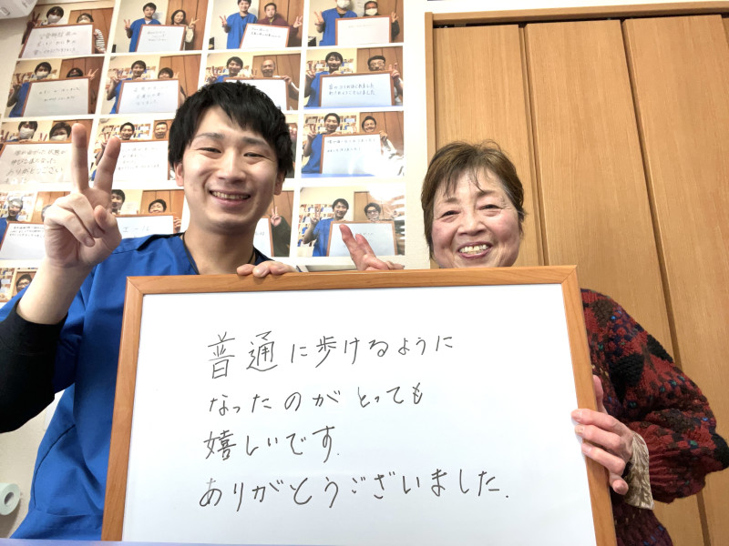 Q、症状の改善などどのような変化がありましたか。 A、痛みがとれみるみるうちに歩けるようになりました。