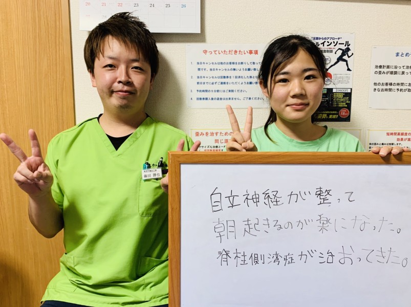 Q、症状の改善などどのような変化がありました? A、姿勢が良くなったため、気分的にも明るくなることが増えました。