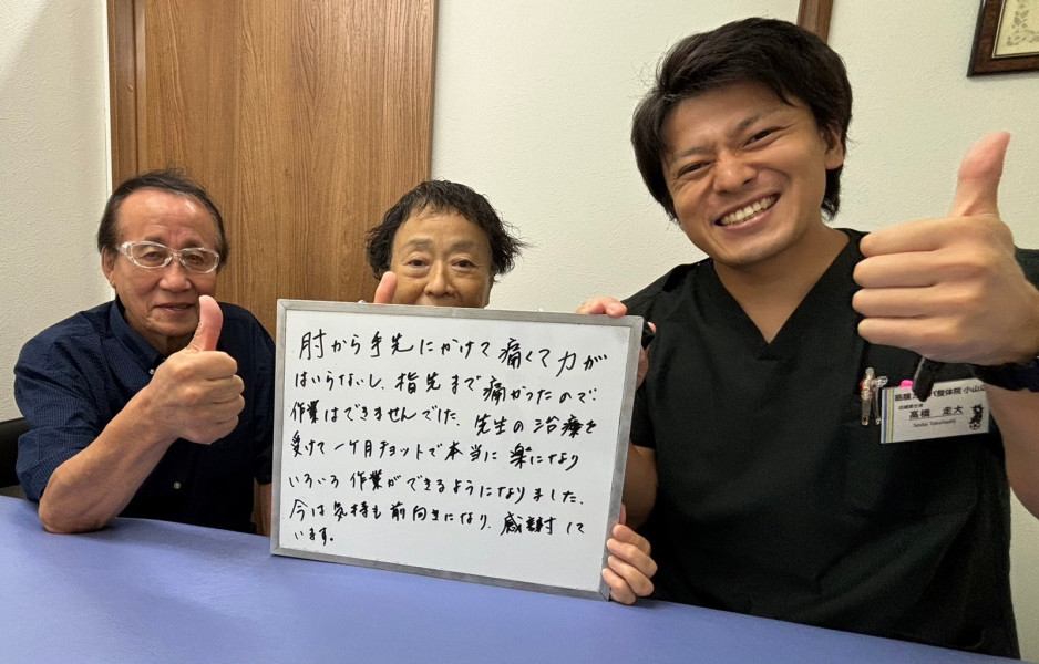 「手首の痛みがなくなって、仕事に前向きに打ち込めるようになりました!」