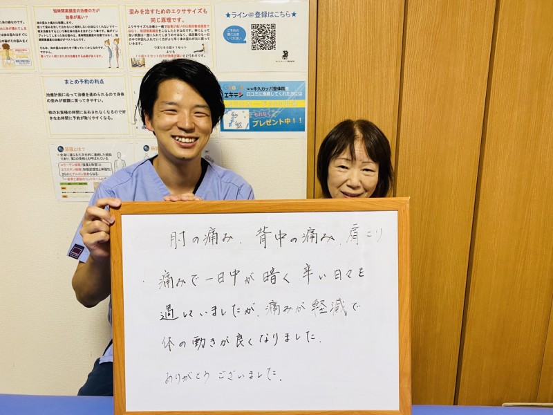 「家事の度に痛かった腱鞘炎と五十肩の後遺症も治りました!」