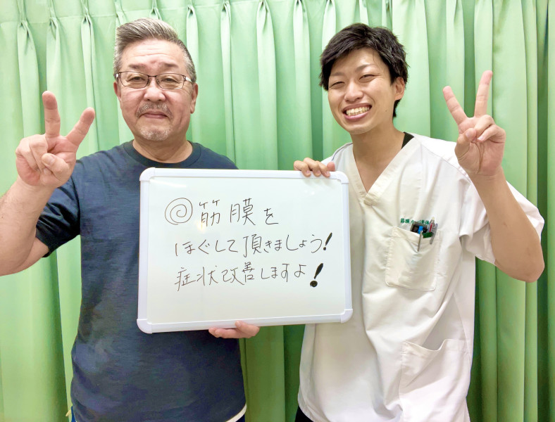 Q、なぜ当院を選んだのか。私の施術を一言で。 A、筋膜施術ということで効くと思った。筋膜強化効果あり!