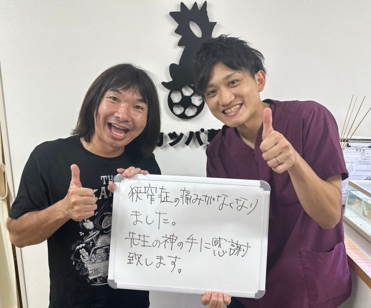Q、あなたと同じような症状でお悩みの皆様へメッセージがありましたら教えてください。 A、狭窄症は手術もあるようですが、私は手術はしたくなかったので、ネットで調べて施術を受けることにしました。今では以前と変わらない生活ができてよかったと思います。