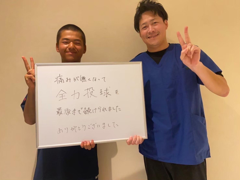 A、継続して通うことで、今は全く肩の痛みがなくなりました。また野球も再開することができて最高の気分です!