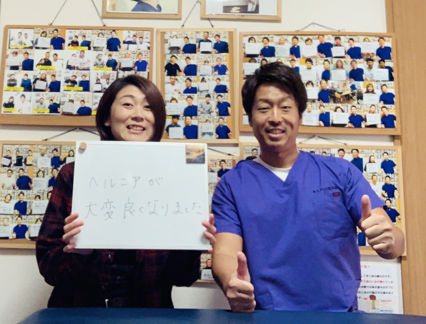 ヘルニアで立っているのも横になっているのも辛い状態でした。家事も辛く、子供と遊んであげられず生活の全てが煩わしかったです。病院で電気を当てたり、ブロック注射をしたりリリカを飲んでいたが、気休め程度でした。それが、こちらに通い2、3ヶ月程度で腰痛が改善し、普通の生活が問題なく送れるようになりました!まさにゴットハンドでした。一生この痛みと付き合って行かなかきゃいけないと絶望してましたが、今はどれだけ痛かったか覚えていません!信頼して通ってみてください!
