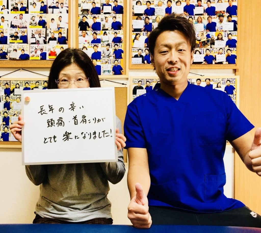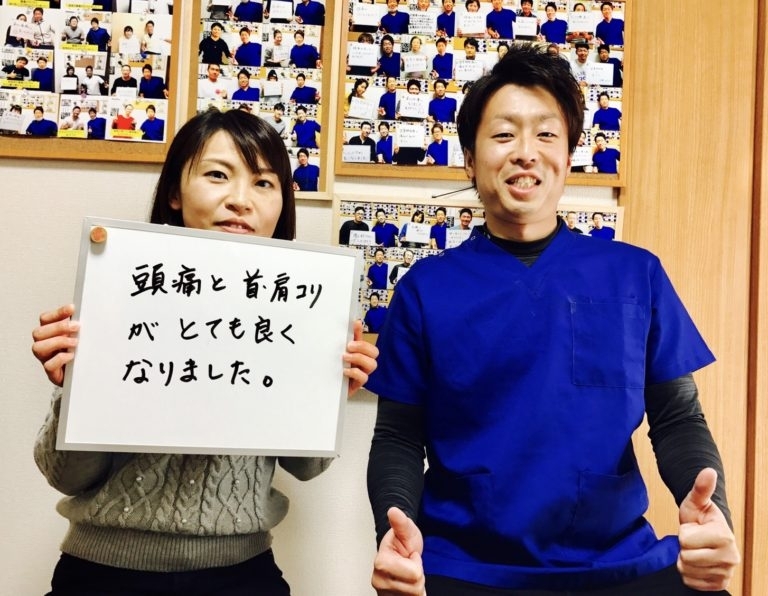 Q、ここへ来て、症状の改善などどのような変化がありましたか? A、一回の施術で首の張りや頭痛がなくなりました。