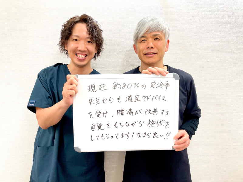 Q、なぜ私を選んだのか。私の施術を一言で。 A、自宅近くであったため。とてもピンポイントな施術で的確です!!